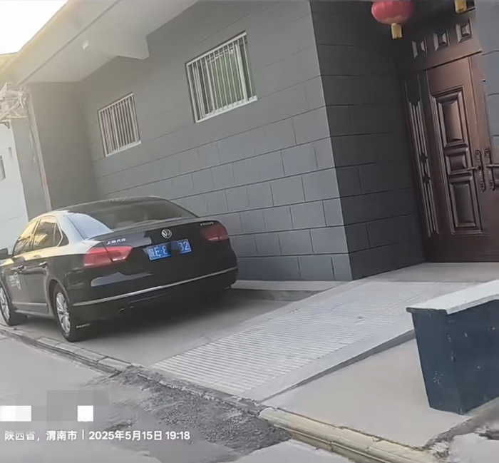 根据网友所发布视频内容,记者注意到,5月15日19时18分,一辆车牌号为陕E**9B2的黑色轿车停放在渭南市一处民宅门口,与此同时,该车辆前门处标注有“省级单位”“公务用车”及“监督电话”029-87**5181。按照网友所发布视频,至少在当天21时13分,该车辆仍旧停在原处。